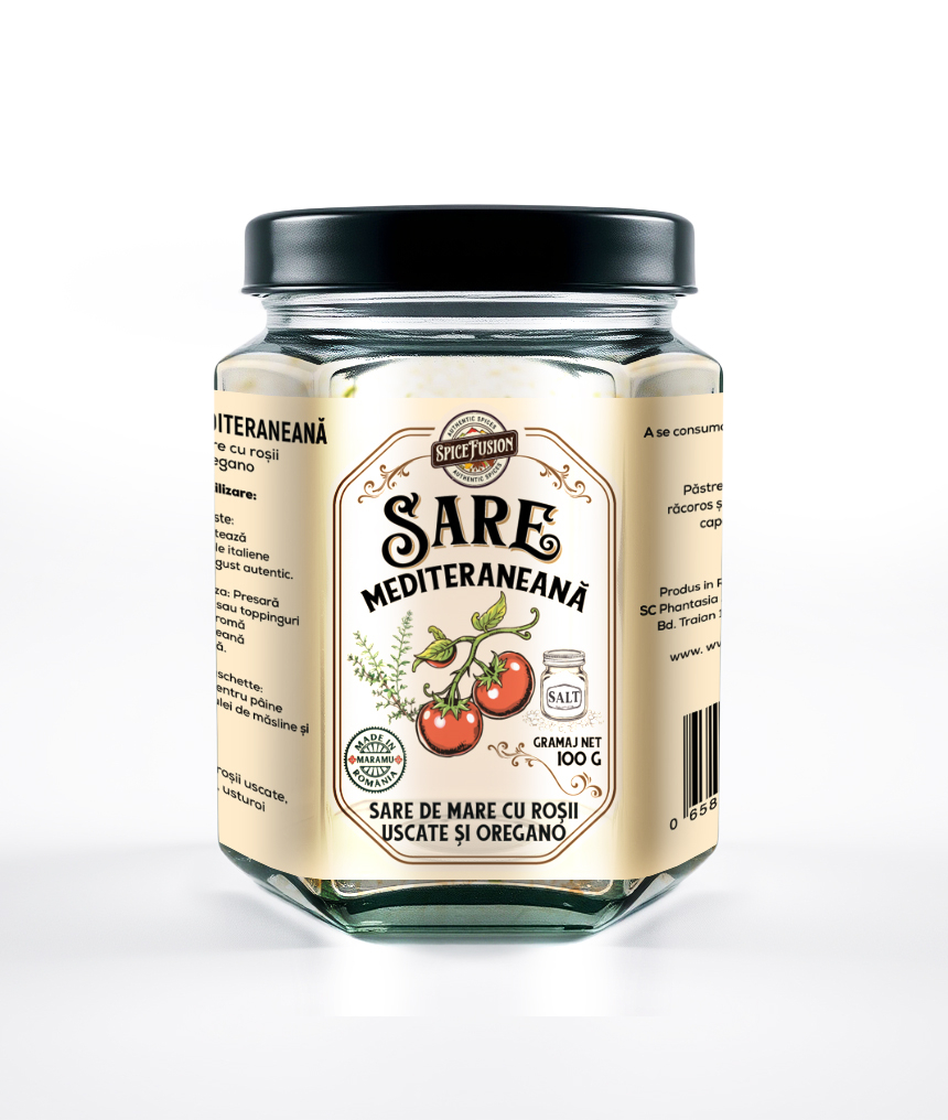 Sare Condimentată Mediteraneană este un amestec delicios și rafinat de sare de mare, roșii uscate, oregano uscat și usturoi granulat. Acest produs adaugă o aromă intensă și un gust caracteristic preparatelor tale, perfect pentru pizza, paste, salate, legume sau preparate la grătar. Fiecare ingredient este ales cu grijă pentru a reda autenticitatea și savoarea Mării Mediterane.