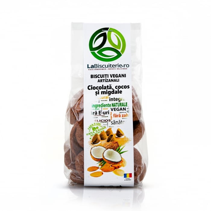 Lasă-te purtat într-o călătorie exotică a gustului cu biscuiții vegani Ciocolată, cocos și migdale! Această rețetă rafinată combină aroma intensă a pudrei de cacao cu textura fină a făinii de migdale și fulgii de cocos, creând un desert echilibrat și plin de savoare. Îndulciți natural cu sirop de agave, acești biscuiți sunt gustarea ideală pentru un moment de răsfăț, alături de o cafea sau un ceai.