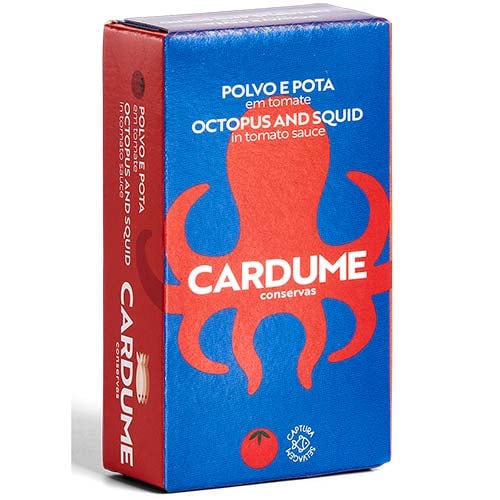 Experimentează caracatița și calamarul fragede, suculente, ambalate cu grijă manual în sos de roșii. O adevărată delicatesă artizanală din Portugalia.